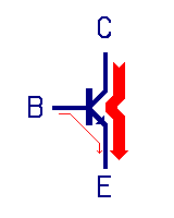 Aber ich verzichte darauf, den Transistorschalter zu erklären, ich führe ihn nur vor, zeige, dass er nur dann Strom von C nach E leiten kann, wenn gleichzeitig ein bisschen Strom von B nach E fließt.