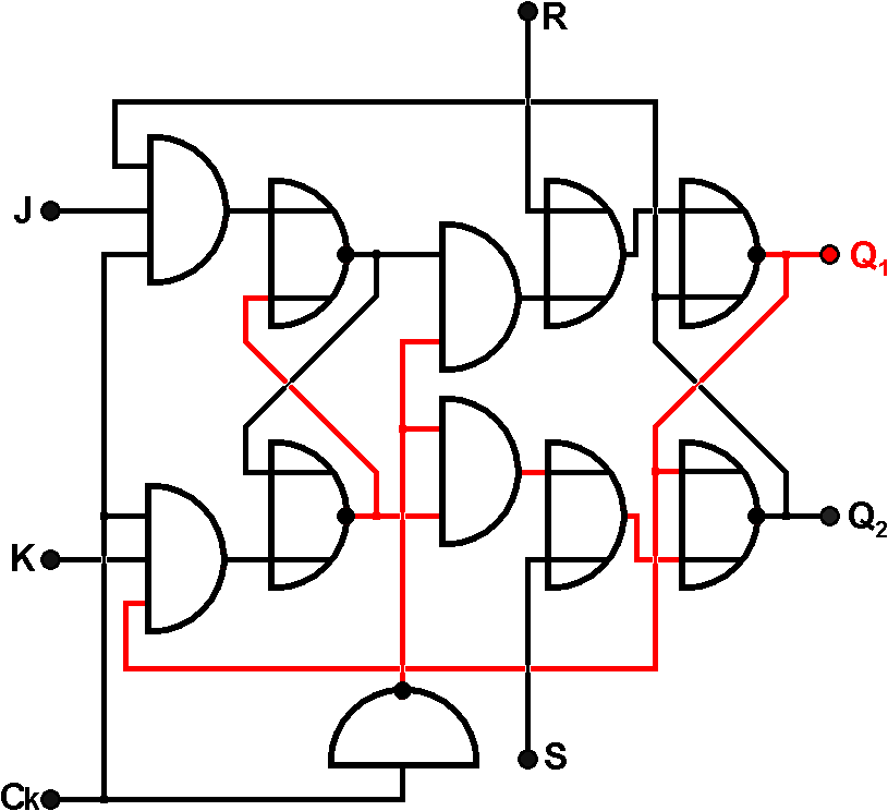 Mauszeiger auf einen der Eingänge J, K, Ck, R oder S richten und Links-Klick