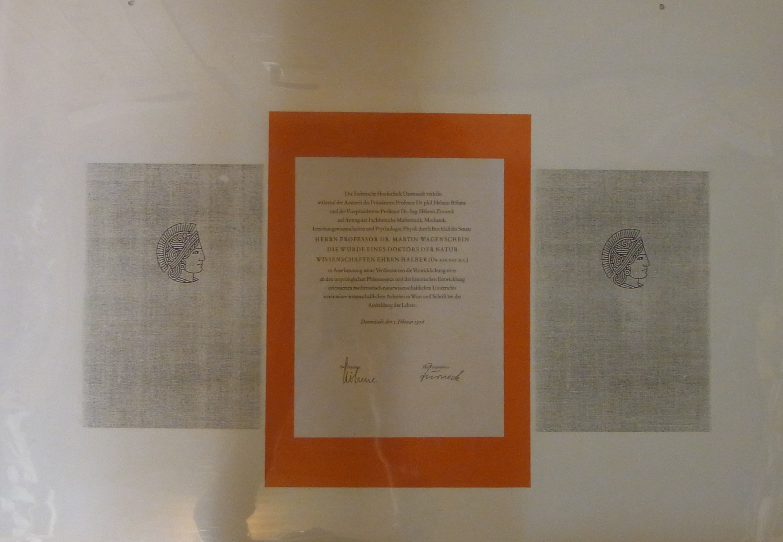 Ehrendoktorurkunde der Technischen Hochschule Darmstadt vom 1. 2. 1978