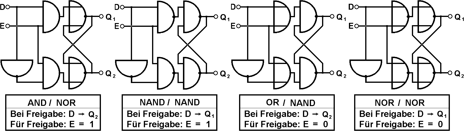 Hier noch einmal die vier Möglichkeiten eines funktionierenden D-Flipflops: