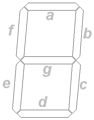 Da war doch diese Anzeige, deren sieben Segmente mit den Buchstaben a-g bezeichnet werden können.