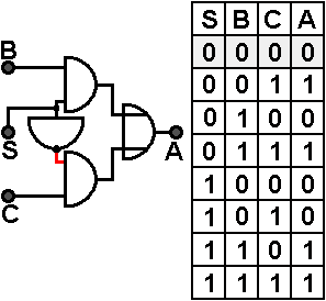 Mauszeiger auf einen der Eingänge A oder S oder in die gewünschte Zeile der Wertetafel richten und Links-Klick