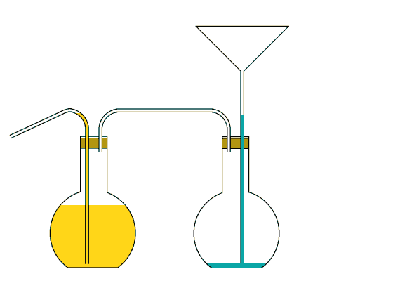 Wenn man in den Trichter irgendeine Flüssigkeit, z.B. Wasser hereingießt, fließt die andere Flüssigkeit, z.B. Wein/Apfelwein/Apfelsaft zum Ausgussrohr hinaus. Ich habe hier nur das Anfangsstadium bis zum ersten Überlaufen gezeichnet. Nun das Ganze so in einen Karton gepackt, dass nur der Trichter und der Ausguss zu sehen sind und fertig ist die Saftmaschine - nach Wagenschein!