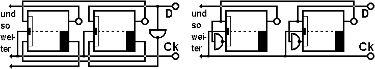 Also verbinden wir nicht nur den Eingang J mit dem Ausgang Q1 des Vorgängers, sondern auch K mit Q2. Das ist doch einfach!